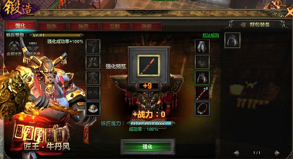 在《天魔劫》中,装备的获得途径主要是普通副本以及一些精英副本,套装只能从英灵决中获得。玩家点击右下角的锻造开始对装备进行强化、镶嵌等;通过消耗铁匠魔力对装备进行强化,前期装备的成功率基本都是100%,不用担心会失败;而镶嵌则是对装备进行灵石镶嵌,是装备拥有灵石的属性。