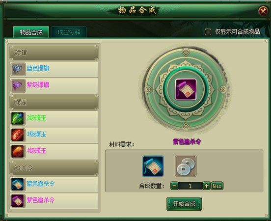 物尽其用,乱舞江湖中,每一位侠士都是一个锻造大师,天生带有一定的锻造能力。 每两个低级物品,即可合成一个高级物品,每一个高级物品,可以分解为低级的同量物品。来吧,展现你们的锻造技术的时候到了!~ 开启条件: 1. 角色≥23级并且完成对应主线任务。 ![]() |